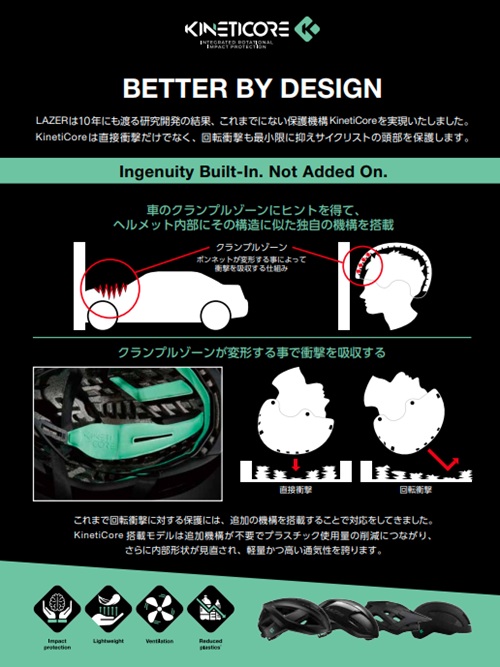 アジアンフィット採用、18通気口で涼しく軽量なKinetiCore搭載ヘルメット